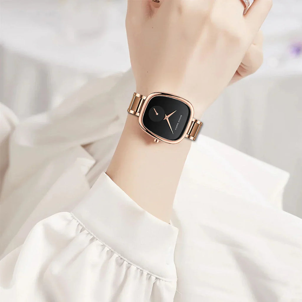 ✔️ Design Exclusivo e Minimalista: Caixa e mostrador delicadamente projetados, com acabamento polido e detalhes luxuosos.