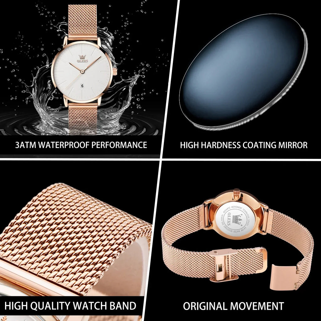OLEVS™ Luxury Rose – O Relógio Feminino Que Une Luxo e Delicadeza