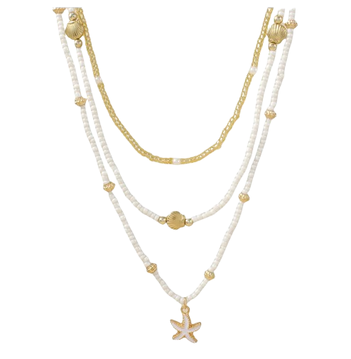Colar Vintage Multicamadas com Miçangas, Conchas e Estrela-do-Mar – O acessório que transforma seu look com leveza, cor e vibração tropical.